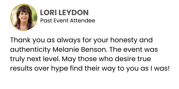 By submitting this form, you consent to receive emails from Melanie Benson related to this event and occasional marketing communications. You may unsubscribe at any time using the link in our emails.